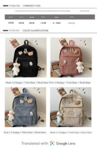 Japanese Casual Large Capacity Trendy Schoolbag With Pendanrt & Doll N223